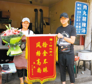 剛退休時(shí)在家里閑不住,便在親人的幫助下在草場坡上開了一個(gè)小餐館買胡辣湯,維持家庭生活,此店已經(jīng)營多年,因味道不錯(cuò),量大味足,雖然店面不大,每天顧客也不少。2014年5月中旬,據(jù)李淑蘭回憶說,當(dāng)天早上一位就餐者吃完早餐,給了一張100元,也許是因?yàn)橹?,還沒找零對(duì)方就走了,當(dāng)時(shí)她還追上去給他找零。沒想到回來后,就看到顧客把包落在店里了。發(fā)現(xiàn)后,李淑蘭在尋找此就餐者無果的情況下,便為客人收存起來,妥善保管。本以為失主當(dāng)天下午就會(huì)過來拿包,結(jié)果一等就是半個(gè)多月。因擔(dān)心失主著急,她每天開業(yè)前,就從家里將包背到店里,下班后又背回去,結(jié)果一直沒有等到失主。李淑蘭非常焦急,萬般無奈,她只好求助其他親戚,并一起打開提包,發(fā)現(xiàn)包里有一臺(tái)蘋果筆記本電腦、一個(gè)ipad和許多貴重物品,李淑蘭判斷,就餐者隨身攜帶筆記本,里面一定有較多的資料,肯定比較重要,失物者一定非常著急,但是經(jīng)過她和家人檢查發(fā)現(xiàn),電腦設(shè)有密碼,打不開。她們只好請電腦專家?guī)椭茨芊耖_啟,在電腦里看能否找到失主的信息,終于電腦被打開,在電腦上她們找到了失主的郵箱,經(jīng)過大半個(gè)月,總算聯(lián)系到了失主。