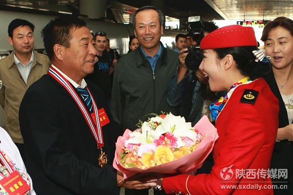陜西傳媒網(wǎng)訊(記者 余誠忠)10月14日下午,陜西省出席第五屆全國道德模范評選表彰頒獎(jiǎng)典禮代表歸來,陜西省文明辦專職副主任鮑貽勇代表陜西省文明辦迎接載譽(yù)歸來的道德模范。