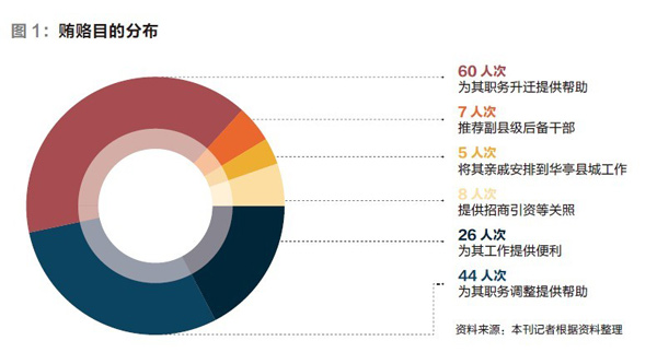 官員們的賄賂目的,有單一、有多樣。其中絕大部分都與職務(wù)調(diào)動、升遷相關(guān),占到總體賄賂事由的七成以上。