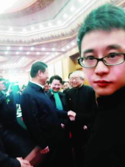 周小平自拍的參加文藝工作座談會的圖片。在他的身后,習(xí)大大正在與參會代表交流。