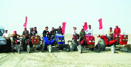此后幾年, 他們還遭遇了很多考驗,諸如暴風(fēng)雨、泥漿、霜凍和風(fēng)雪。后來,鄭柏峪聽取當(dāng)?shù)啬撩竦慕ㄗh,將堿蓬種子播在拖拉機犁開的深溝里,這樣既避免了被風(fēng)暴卷走,又能借潮濕水分滋養(yǎng)種子,并且能有效防止霜凍,堿蓬的成活率也越來越高。