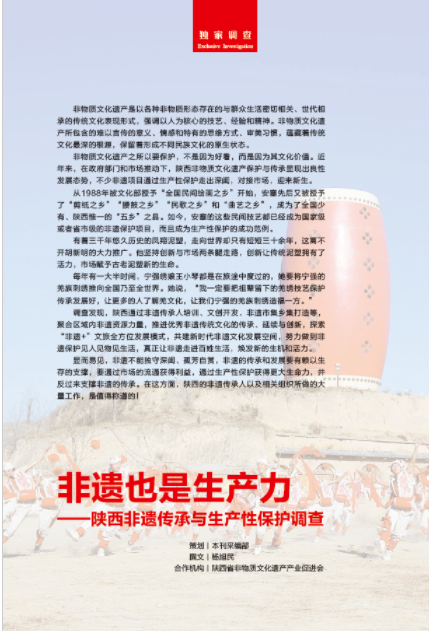 調(diào)查發(fā)現(xiàn),陜西通過(guò)非遺傳承人培訓(xùn)、文創(chuàng)開(kāi)發(fā)、非遺市集鄉(xiāng)集打造等,聚合區(qū)域內(nèi)非遺資源力量,推進(jìn)優(yōu)秀非遺傳統(tǒng)文化的傳承、延續(xù)與創(chuàng)新,探索“非遺+”文旅全方位發(fā)展模式,共建新時(shí)代非遺文化發(fā)展空間,努力做到非遺保護(hù)見(jiàn)人見(jiàn)物見(jiàn)生活,真正讓非遺走進(jìn)百姓生活,煥發(fā)新的生機(jī)和活力。