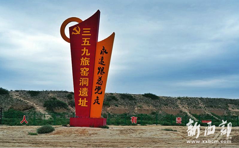 走過(guò)鹽場(chǎng)堡段長(zhǎng)城,很遠(yuǎn)就能看到一座標(biāo)有“三五九旅窯洞遺址”的紅黃相間的雕塑。當(dāng)年,三五九旅戰(zhàn)士們住在這里,演繹了一段段熱火朝天、可歌可泣的打鹽故事。