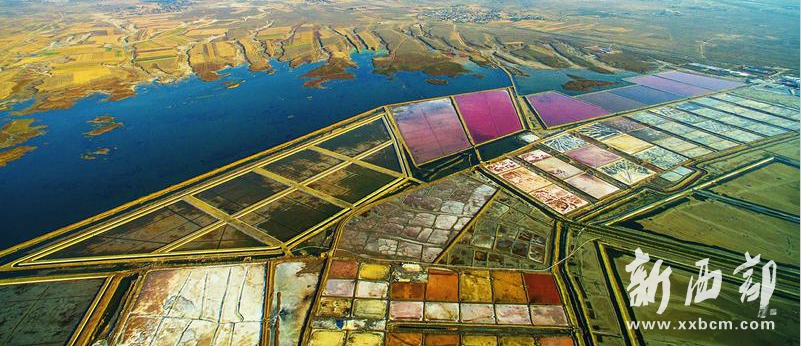 ▲航拍鏡頭下的定邊鹽湖