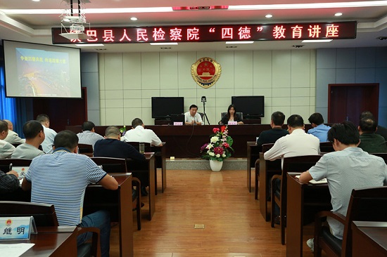 新西部網(wǎng)訊(張晉 通訊員張峰)9月14日,鎮(zhèn)巴縣人民檢察院為全面提高全院干警道德素質(zhì),邀請鎮(zhèn)巴縣委精神文明辦主任、縣委宣傳部部長華新圃為全院干警以“爭做四德模范、傳遞道德力量”為主題的四德教育,即:社會公德、職業(yè)道德、家庭美德、個人品德,為此在全院大力營造團結奮進、昂揚向上、文明和諧的良好氛圍,以全面提高檢察干警道德素質(zhì),推動檢察事業(yè)全面健康發(fā)展。