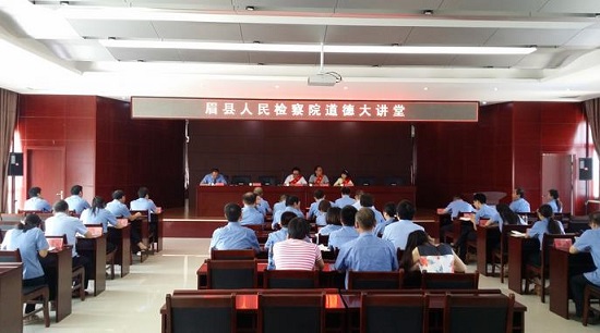 “認(rèn)真履職,無(wú)私奉獻(xiàn),讓群眾時(shí)時(shí)刻刻感受法律的公平正義,用我們的雙手捍衛(wèi)法律的尊嚴(yán),做一個(gè)頂天立地的政法人”大家銘記著講座最后的號(hào)召,邁著堅(jiān)定的步伐走出講堂。道德的力量滋潤(rùn)了大家的心靈,干警素質(zhì)得到提高、思想得以升華,隨著眉縣檢察院“道德大講堂”的深入開展,道德必將匯聚成一股強(qiáng)大的正能量,成為檢察機(jī)關(guān)弘揚(yáng)正義、公正司法的源生動(dòng)力。