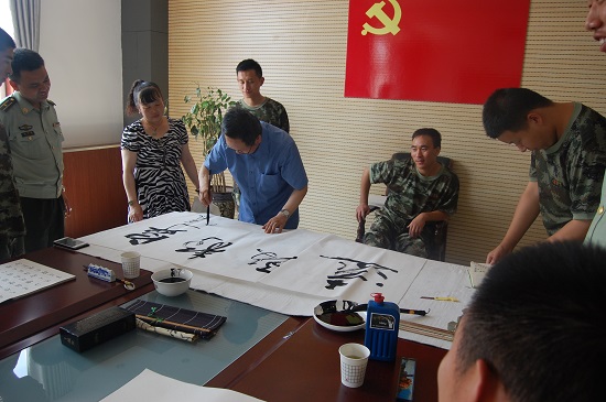 陜西省書法協(xié)會會員、寶雞市書協(xié)理事、寶雞市檢察官文聯(lián)副主席,麟游縣檢察院控申民行科科長馬全宏與院法警一起,先后到縣消防大隊和縣武警中隊,為官兵現(xiàn)場揮毫潑墨,撰寫法治宣傳用語,并贈送書法作品20余件。同時圍繞“身邊的法律”主題,結(jié)合案例,就與部隊官兵關(guān)系密切的相關(guān)民事法律做了深入淺出的講解,告知官兵權(quán)利義務(wù)關(guān)系,教育部隊官兵知法尊法守法用法。在授課過程中,改變灌輸式的說教方式,引導(dǎo)官兵互動交流,針對熱點問題積極討論。極大的豐富了軍營文化生活,讓法治文化浸潤官兵心田,受到了官兵好評。