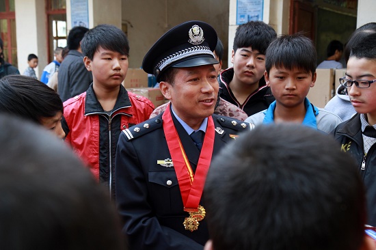 新西部網(wǎng)訊( 通訊員 段少偉)11月6日,全國(guó)公安機(jī)關(guān)愛民模范、“全國(guó)第五屆我最喜愛的人民警察”特別獎(jiǎng)獲得者、二級(jí)英模汪勇和全市公安英模、離退休老同志、老黨員一起走進(jìn)藍(lán)田縣前衛(wèi)鎮(zhèn)吳村廟中學(xué),和莘莘學(xué)子一起學(xué)英模、話成長(zhǎng),老少共筑中國(guó)夢(mèng)。