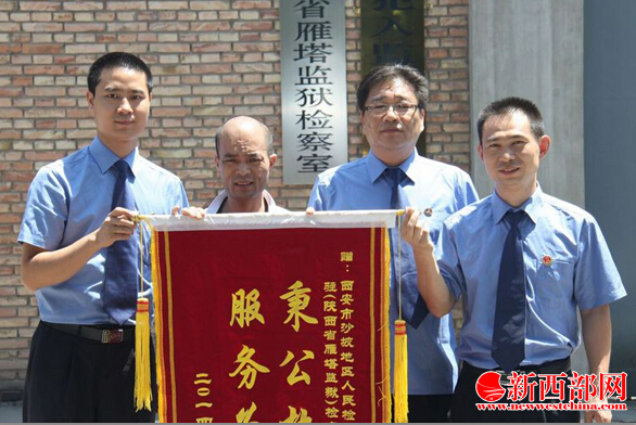 新西部網(wǎng)訊(記者宋海龍 張晉通訊員王天褀 陳小平)7月25日上午,沙坡地區(qū)檢察院門前鞭炮響起,被無罪釋放的原雁塔監(jiān)獄服刑人員王江峰,給沙坡地區(qū)檢察院和駐雁塔監(jiān)獄檢察室送來了錦旗,感謝該院檢察院干警在其申訴期間不畏艱難、查微析疑,尋求事實真相,為他洗清不白之冤。