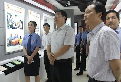 在新建成開放的“共產(chǎn)黨員先鋒模范教育基地”——“全國優(yōu)秀共產(chǎn)黨員”、“全國模范檢察官”王書田同志先進(jìn)事跡展廳,胡太平檢察長聽取了講解,翻閱了書田同志生前寶貴圖片和實(shí)物資料,重溫了王書田同志恪盡職守、忘我奉獻(xiàn)的感人事跡。