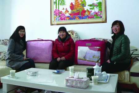 ▲費(fèi)亭玉(中)幸福地坐在總理送的棉被