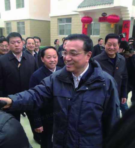 2014年元月26日,這是一個(gè)令商洛和鎮(zhèn)安人民永遠(yuǎn)難忘的日子,國(guó)務(wù)院總理李克強(qiáng)風(fēng)塵仆仆來(lái)到鎮(zhèn)安縣云蓋寺鎮(zhèn)陜南移民新村花園社區(qū)慰問(wèn)看望移民安居群眾。那一刻,公路兩旁和社區(qū)廣場(chǎng)沸騰了,總理招手致意問(wèn)寒問(wèn)暖的情景,如今還歷歷在目。
