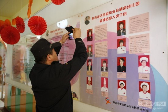 警察在幼兒園公示欄中拍攝相關(guān)負(fù)責(zé)人照片