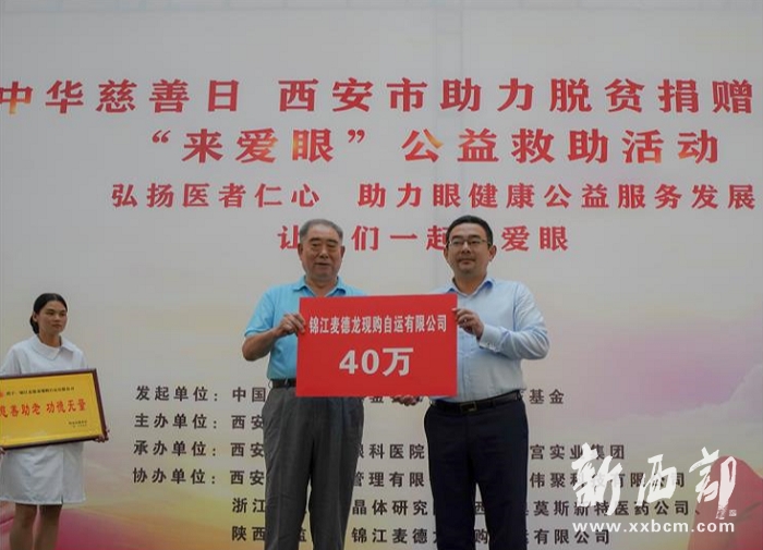 由中國(guó)社會(huì)福利基金會(huì)市長(zhǎng)助學(xué)公益基金現(xiàn)場(chǎng)捐贈(zèng)100萬(wàn)元基金;西安新城海翔眼科醫(yī)院捐助價(jià)值500萬(wàn)元的檢查、藥品、診療和手術(shù)費(fèi)用基金;天津偉聚科技有限公司捐贈(zèng)價(jià)值198萬(wàn)元的兒童青少年眼健康篩查及數(shù)據(jù)分析系統(tǒng)20套;浙江依鏡人工晶體研究院捐贈(zèng)價(jià)值100萬(wàn)元的依鏡產(chǎn)品;西安海翔健康管理公司捐贈(zèng)100萬(wàn)元基金;幫助那些低保、貧困、下崗職工等困難家庭眼病患者及因病致貧、因病致殘的困難家庭;并有陜西證監(jiān)局、陜西省上市公司協(xié)會(huì)捐款186.9萬(wàn),用于資助今年9個(gè)地市的貧困學(xué)子;還有西安奧莫斯新特醫(yī)藥公司捐贈(zèng)價(jià)值485萬(wàn)元的藥品,開(kāi)展慈善助醫(yī)活動(dòng);錦江麥德龍現(xiàn)購(gòu)自運(yùn)有限公司捐贈(zèng)價(jià)值40萬(wàn)元的食物,進(jìn)行慈善助老。這些愛(ài)心單位、愛(ài)心企業(yè),他們?cè)谧晕野l(fā)展的同時(shí),不忘回饋社會(huì),長(zhǎng)期支持和參與慈善公益活動(dòng),有的還專門(mén)成立了慈善扶貧基金,從事慈善扶貧,慈善助醫(yī)、助老以及關(guān)愛(ài)兒童等公益活動(dòng),把中華民族的傳統(tǒng)美德、高尚的醫(yī)德有形的發(fā)揚(yáng)光大。他們的善行義舉,就是落實(shí)《中共中央、國(guó)務(wù)院關(guān)于打贏脫貧攻堅(jiān)戰(zhàn)的決定》精神的具體行動(dòng)。