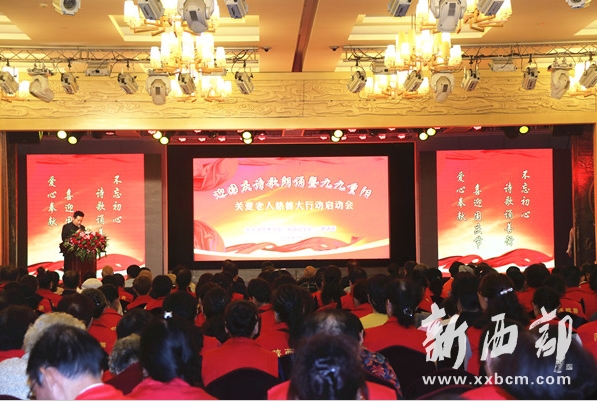 新西部網(wǎng)西安9月28日消息 今天上午,陜西省慈善協(xié)會(huì)迎國慶詩歌朗誦暨九九重陽關(guān)愛老人慈善大行動(dòng)啟動(dòng)會(huì)在省政府綜合樓舉行,會(huì)議由省慈善協(xié)會(huì)主辦,省詩詞學(xué)會(huì)、e路詩語協(xié)辦,省慈善協(xié)會(huì)志愿者分會(huì)(總隊(duì))承辦。省慈善協(xié)會(huì)老領(lǐng)導(dǎo)徐山林、陳再生,省人大原副主任吳前進(jìn),省慈善協(xié)會(huì)會(huì)長劉維隆、省文化交流協(xié)會(huì)名譽(yù)會(huì)長宋海源、省政協(xié)文化教育委員會(huì)原主任雷濤、西安美術(shù)學(xué)院原黨委書記屈應(yīng)超、省楷書研究會(huì)會(huì)長范朝旭、省詩詞學(xué)會(huì)副會(huì)長商子秦、省老齡辦副主任關(guān)居正、省文聯(lián)副巡視員王衛(wèi)、省直機(jī)關(guān)工委婦工委主任史婕、省住建廳直屬機(jī)關(guān)黨委專職副書記胡亞紅、省美術(shù)家協(xié)會(huì)少兒美術(shù)藝委會(huì)副主任兼秘書長靳長安、西安市收藏協(xié)會(huì)會(huì)長咸建軍以及陜西延長石油(集團(tuán))有限責(zé)任公司、陜西禧福祥集團(tuán)、陜西九九養(yǎng)老產(chǎn)業(yè)有限公司、西安銀橋乳液(集團(tuán))有限公司、省太平洋保險(xiǎn)公司、西安絲綢之路聯(lián)盟負(fù)責(zé)人約500人參加會(huì)議。