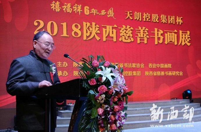 新西部網西安10月19日消息(張蓓蕾)今天上午,“禧福祥6年西鳳 天朗控股集團”杯2018陜西慈善書畫展活動在天朗美術館拉開帷幕?;顒佑申兾魇〈壬茀f(xié)會、陜西省書法家協(xié)會、西安中國畫院主辦,陜西禧福祥集團、天朗控股集團、陜西省慈善書畫研究會承辦。省慈善協(xié)會會長劉維隆,省人大常委會原副主任、省慈善協(xié)會顧問吳前進,省文聯(lián)副主席、省書法家協(xié)會名譽主席雷珍民,省政協(xié)原常委、省文學基金會理事長雷濤,西安中國畫院副院長孫晉,陜西禧福祥集團董事長助理,天朗控股集團董事長孫茵,省慈善協(xié)會副會長張鳳英、孫忠信、趙浩義,監(jiān)事會主席李清軍、慈善專員耿慶義、周敏等領導以及著名書畫家馬文彥、李杰民、魏良、宋亞平、李玉田、李艷秋、劉偉群、王行舟、王家民、趙誠、郭濤、羅平、郭柱洲、盧山、王伯鋒等177位書畫藝術家、愛好者出席會議。