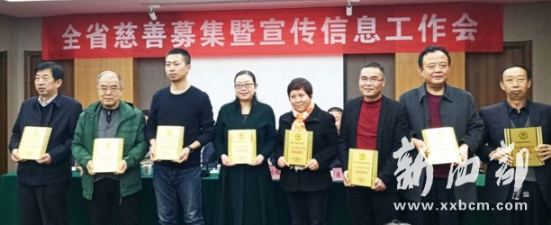 會議回顧總結過去一年的工作,表彰在慈善募集和宣傳戰(zhàn)線上做出優(yōu)異成績的組織、媒體、個人,推廣經(jīng)驗,部署工作。省慈善協(xié)會副會長張文亮宣讀了《陜西省慈善協(xié)會關于表彰2018年度慈善募集及宣傳信息工作先進單位、優(yōu)秀工作者的通知》。會議評選出榆林市慈善協(xié)會等15個單位為2018年度網(wǎng)絡慈善工作先進單位;西安市、延安市慈善協(xié)會為2018年度網(wǎng)絡慈善工作優(yōu)秀組織;電視扶貧圓夢彩色等6個項目為2018年度“99公益日”優(yōu)秀項目;蔣云龍等8名同志為2018年度慈善宣傳優(yōu)秀記者;西北大學慈善研究院等14個單位為2018年度慈善宣傳信息工作先進單位;《成建禮的慈善信仰》等6篇稿件為2018年度慈善宣傳優(yōu)秀稿件;陜西廣播電視臺等4個單位為2018年度慈善宣傳突出貢獻媒體;安康市慈善協(xié)會等5個單位為2018年度“9?5獻愛心慈善聯(lián)合大行動”先進單位;倪保文等12名同志為2018年度慈善宣傳優(yōu)秀信息員;與會領導分別向榮獲2018年度網(wǎng)絡慈善工作先進單位、優(yōu)秀組織,2018年度“99公益日”優(yōu)秀項目,2018年度網(wǎng)絡慈善宣傳信息工作先進單位、優(yōu)秀信息員,2018年度慈善宣傳優(yōu)秀稿件、優(yōu)秀記者、工作突出貢獻媒體,2018年度“9.5”獻愛心慈善聯(lián)合大行動先進單位,《善天下》雜志宣傳發(fā)行先進單位及個人頒發(fā)了牌匾或證書。