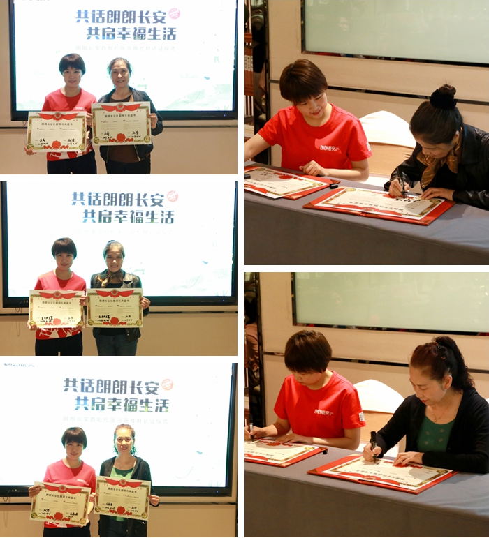 朗朗長(zhǎng)安CO團(tuán)隊(duì)負(fù)責(zé)人張倩女士分別與蔚藍(lán)印象·乒乓球群,蔚藍(lán)東庭·籃球群,藍(lán)湖樹(shù)·太極群,蔚藍(lán)人家·舞蹈隊(duì),萊茵小城·舞蹈隊(duì)的社群領(lǐng)袖共同簽署承諾書(shū),并代表朗朗長(zhǎng)安為各社群領(lǐng)袖授牌。這不僅是對(duì)各位社群領(lǐng)袖優(yōu)秀成績(jī)的認(rèn)可,亦是【朗朗長(zhǎng)安】發(fā)展的全新起點(diǎn)。