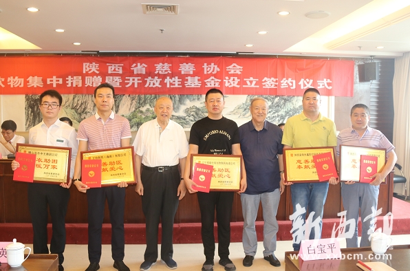 6月26日,陜西省慈善協(xié)會在省政府舉行款物集中捐贈暨開放性基金設(shè)立簽約儀式,省慈善協(xié)會老領(lǐng)導徐山林、陳再生、陸棟,會長劉維隆,常務(wù)副會長李榮杰,副會長張文亮、張鳳英、孫忠信以及各愛心企業(yè)負責人,監(jiān)事會主席、各慈善專員、法律顧問出席儀式。