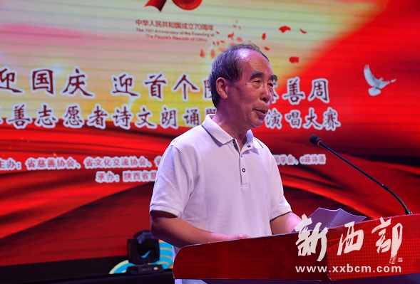 “慶祝新中國70周年華誕、迎首個陜西慈善周慈善志愿者詩歌朗誦、愛心演唱大賽”活動8月28日在西安舉行。陜西省慈善協(xié)會副會長、志愿者分會(總隊)總隊長孫忠信致辭!