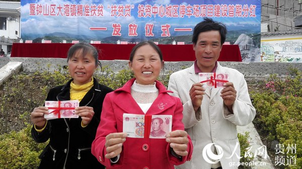 鐘山區(qū)大灣鎮(zhèn)精準(zhǔn)扶貧“扶貧貸”投資中心城區(qū)停車(chē)場(chǎng)項(xiàng)目建設(shè)首期分紅。貴州省民政廳供圖