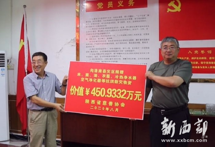 8月5日18時至8月6日凌晨四時,洛南縣突遭特大暴雨洪水襲擊,面對突如其來的重大災(zāi)情,陜西省慈善協(xié)會及時反應(yīng),主動出擊,立即組成工作小組奔赴災(zāi)區(qū)一線,查看災(zāi)情,了解需求,召開緊急會議,制定方案,籌措救災(zāi)款物。8月12日一大早,會長吳前進(jìn)、副會長張文亮、蘇新泉一行趕往受災(zāi)嚴(yán)重的洛南縣石門鎮(zhèn),為災(zāi)區(qū)人民送去價值450余萬元災(zāi)區(qū)急需的款物。