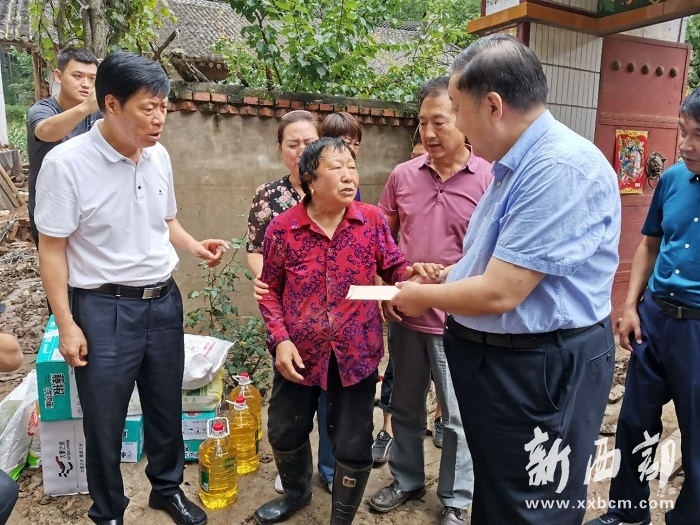 吳前進(jìn)一行還踏著泥濘深入受災(zāi)嚴(yán)重的張灣村,走進(jìn)受災(zāi)群眾陶軍、張志英、陳喜扣家中,送去救災(zāi)款、米面油、食品、衣物,實(shí)地了解救災(zāi)情況,與災(zāi)民親切交談,鼓勵災(zāi)民樹起生活信心,重建美好家園。
