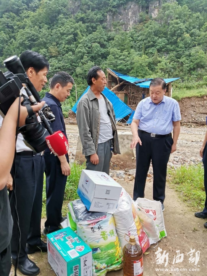 ▲吳前進(jìn)一行來到石門鎮(zhèn)張灣村六組張志英家,送來救災(zāi)款物。