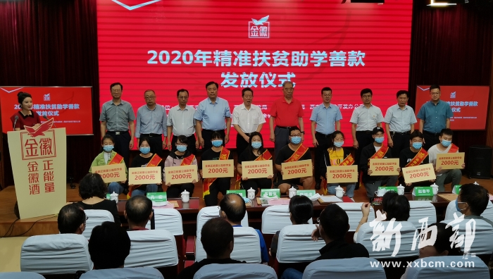 金徽酒股份有限公司是甘肅隴南一家大型上市公司,多年來(lái),他們?cè)谧晕易龃笞鰪?qiáng)的同時(shí),不忘回饋社會(huì),累計(jì)上繳稅費(fèi)18億之多,并長(zhǎng)期從事慈善公益活動(dòng),專門(mén)成立了金徽正能量公益基金,累計(jì)用于慈善公益事業(yè)的善款達(dá)1.3億之多。他們還連續(xù)三年在西安市開(kāi)展“金徽精準(zhǔn)扶貧公益助學(xué)活動(dòng)”,共捐贈(zèng)善款100多萬(wàn)元,資助困難家庭大學(xué)生500多名。今年,再次捐贈(zèng)35萬(wàn)元善款,為西安市2020年國(guó)家統(tǒng)招的175名農(nóng)村建檔立卡戶貧困大學(xué)生以及城市家庭特別困難的大學(xué)生,每人一次性給予2000元資助,幫他們圓大學(xué)夢(mèng)。