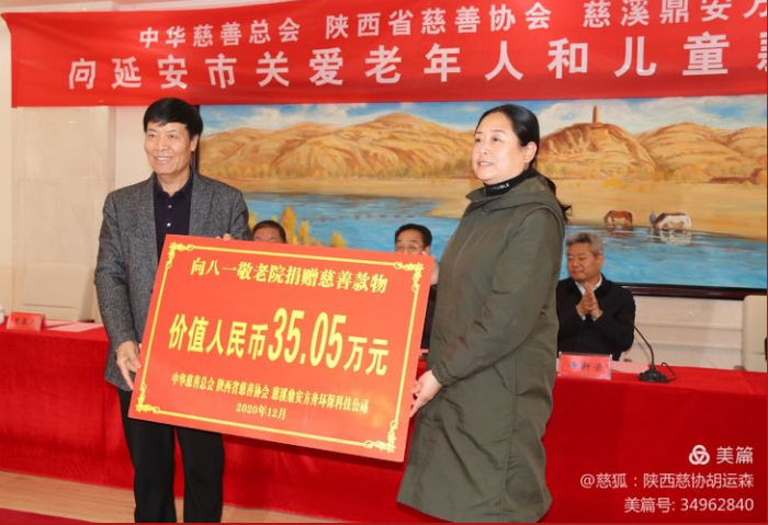▲中華慈善總會 陜西省慈善協(xié)會慈溪鼎安方舟環(huán)??萍脊鞠蜓影簿栀涥P(guān)愛老人和兒童款物1201萬元