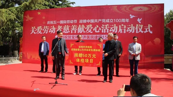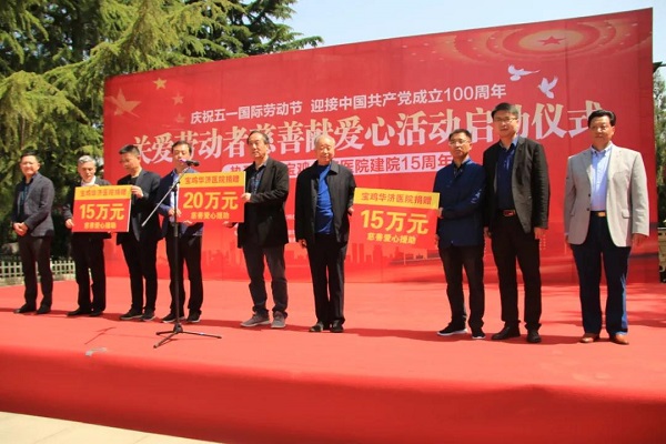 2021年5月1日寶雞華濟醫(yī)院15周年慶之際,由市委文明辦、市慈善總會舉辦,寶雞華濟醫(yī)院承辦的“關愛勞動者·慈善獻愛心”活動在人民公園南廣場啟動。
