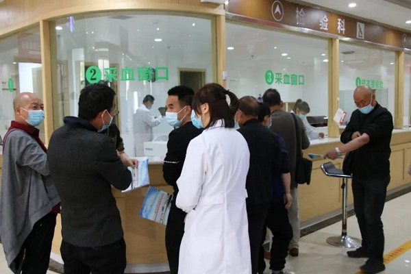 檢驗科為環(huán)衛(wèi)人員抽血化驗