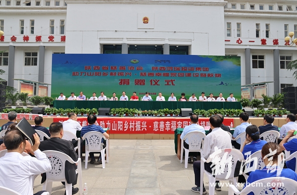 新西部網(wǎng)商洛5月27日電(記者王順利)陜西省慈善協(xié)會、陜西鴻瑞投資集團捐贈款物1210.11萬元助力山陽縣鄉(xiāng)村振興、慈善幸福家園建設(shè)儀式今天在山陽縣漫川關(guān)鎮(zhèn)舉行。陜西省人大常委會原副主任、省慈善協(xié)會會長吳前進,商洛市委副書記、常務副市長武文罡,商洛市人大常委會原主任、市決策委主任何鐵虎,陜西省總工會原常務副主席周樹紅,商洛市委常委、統(tǒng)戰(zhàn)部長杜志強,商洛市人大常委會一級巡視員劉淑慧,商洛市政府副市長權(quán)雅寧,商洛市政協(xié)副主席張永平,省慈善協(xié)會常務副會長李榮杰、副會長張文亮、蘇新泉、趙浩義,商洛市慈善協(xié)會會長李選良,山陽縣委書記張國瑜,陜西鴻瑞集團董事長王世春出席,吳前進、權(quán)雅寧、王世春講話,張國瑜致辭,李榮杰主持儀式。