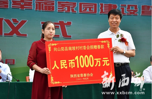 儀式上,省慈善協(xié)會副會長蘇新泉向山陽縣慈善協(xié)會會長張達喜遞交捐贈210.115萬元展示牌;省慈善協(xié)會副會長張文亮向山陽縣南坡村黨支書記孫延雙遞交鄉(xiāng)村振興、慈善幸福家園項目資金1000萬元展示牌。與會領(lǐng)導啟動山陽縣鄉(xiāng)村振興、慈善幸福家園項目。