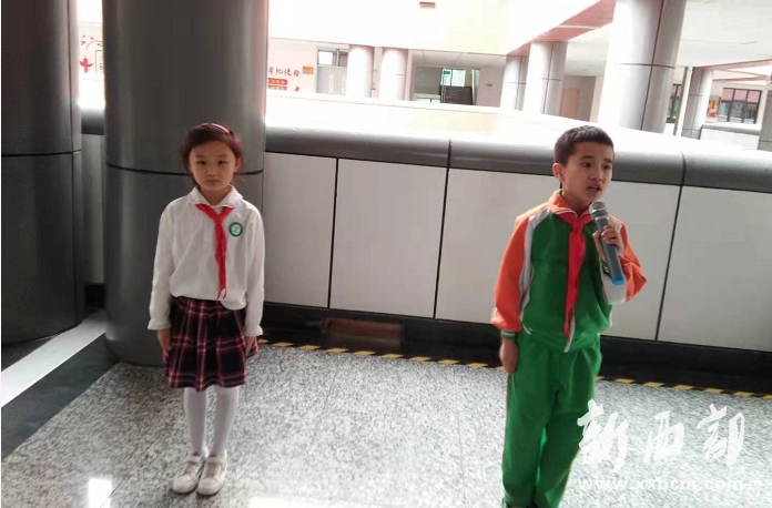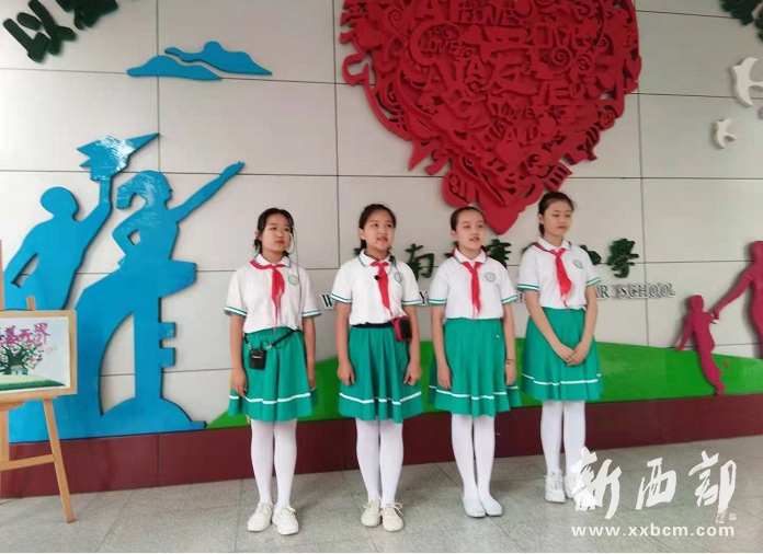 ▲臨渭區(qū)西安路小學學生為媒體記者介紹情況。