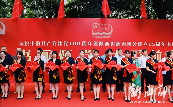 上午9時(shí)舉行書(shū)畫展開(kāi)展儀式。省政府原常務(wù)副省長(zhǎng)徐山林;省人大常委會(huì)原副主任鄧?yán)?、陳再生、劉維隆,省政協(xié)原副主席陸棟,省人大常委會(huì)原副主任、省慈善協(xié)會(huì)會(huì)長(zhǎng)吳前進(jìn),常務(wù)副會(huì)長(zhǎng)李榮杰、副會(huì)長(zhǎng)張文亮;省美術(shù)家協(xié)會(huì)主席郭線廬,黨組書(shū)記、常務(wù)副主席呂俊濤,省美協(xié)副主席宋亞萍;省書(shū)法家協(xié)會(huì)主席陳建貢;西安中國(guó)畫研究會(huì)主席李玉田;禧福祥品牌運(yùn)營(yíng)公司董事長(zhǎng)王延安;天朗集團(tuán)副總裁周崗為慶祝中國(guó)共產(chǎn)黨成立100周年慈善書(shū)畫展剪彩。徐山林宣布書(shū)畫展開(kāi)幕。