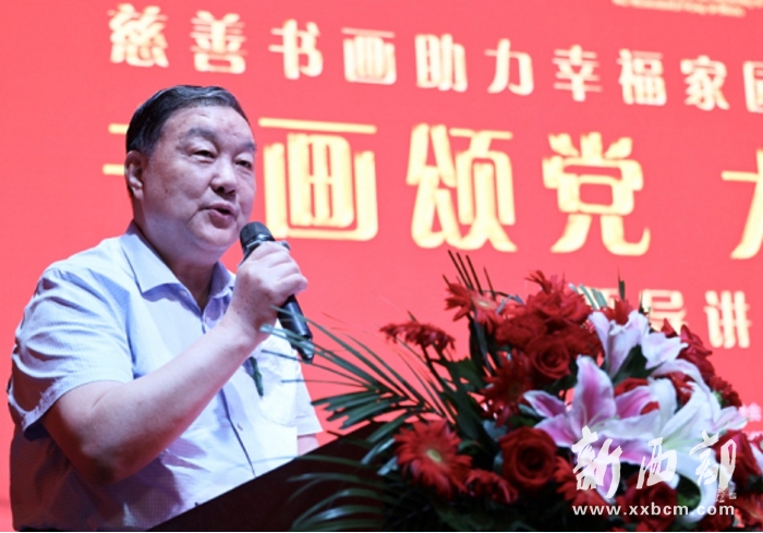 吳前進(jìn)表示,“慈善書(shū)畫”主題活動(dòng)已開(kāi)展了七年,下一步要著力在三個(gè)方面有所突破:一是創(chuàng)作精品。通過(guò)書(shū)畫藝術(shù)展示新時(shí)代中國(guó)特色社會(huì)主義建設(shè)成就,歌頌黨、歌頌祖國(guó),弘揚(yáng)主旋律,傳播慈善文化;二是書(shū)畫慈善。通過(guò)書(shū)畫藝術(shù)家們的作品捐贈(zèng),展示書(shū)畫藝術(shù)家的大愛(ài)情懷,慈善精神,推動(dòng)慈善事業(yè)發(fā)展;三是藝術(shù)交流。為書(shū)畫界提供一個(gè)互相學(xué)習(xí)、交流互鑒的平臺(tái),培育新人,發(fā)揚(yáng)光大陜西書(shū)畫藝術(shù)。相信通過(guò)大家的努力,這一主題活動(dòng)將會(huì)成為團(tuán)結(jié)全省書(shū)畫界的朋友們、傳承中華優(yōu)秀傳統(tǒng)文化、弘揚(yáng)慈善精神的品牌項(xiàng)目。