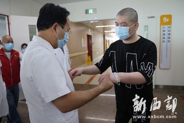 看到西安國際醫(yī)學(xué)中心醫(yī)院北院區(qū)名譽院長賀西京、北院區(qū)關(guān)節(jié)二科閆天勝主任、北院區(qū)運動康復(fù)科主任范相成、主治醫(yī)師王艷以及愛心大姐邱華和她的志愿服務(wù)團(tuán)隊再一次來看望自己,亮亮非常激動,為西安國際醫(yī)學(xué)中心醫(yī)院北院區(qū)脊柱外科、運動康復(fù)科、陜西省慈善協(xié)會愛心大姐志愿團(tuán)隊、愛心廚房送上錦旗,感謝他們實現(xiàn)了自己行走的愿望。他說,“我在床上躺了整整八年,現(xiàn)在最大的愿望就是想出去走走,看看外面的世界,以后我也會加入愛心大姐志愿服務(wù)團(tuán)隊成為一名志愿者,把愛傳遞下去!”