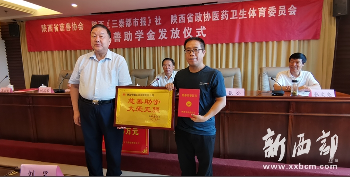浙江中煙工業(yè)陜西分公司總經(jīng)理張合向陜西省慈善協(xié)會(huì)副會(huì)長(zhǎng)張文亮遞交捐贈(zèng)示意牌;陜西省慈善協(xié)會(huì)會(huì)長(zhǎng)吳前進(jìn)分別向三秦都市報(bào)社社長(zhǎng)高敬毅,浙江中煙陜西分公司總經(jīng)理張合頒發(fā)捐贈(zèng)證書(shū)、紀(jì)念牌匾;陜西省慈善協(xié)會(huì)會(huì)長(zhǎng)吳前進(jìn),省政協(xié)醫(yī)藥衛(wèi)生體育委員會(huì)專(zhuān)職副主任劉昌軍等與會(huì)領(lǐng)導(dǎo)向受助學(xué)生代表發(fā)放了助學(xué)金。陜西省慈善協(xié)會(huì)常務(wù)副會(huì)長(zhǎng)李榮杰主持捐贈(zèng)儀式。