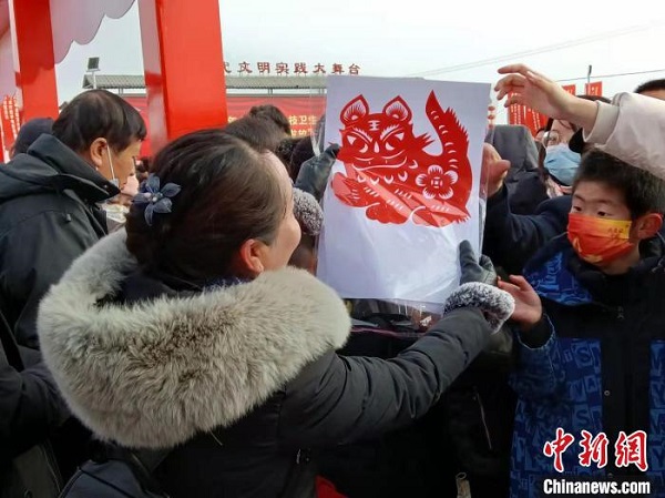 活動現場,文藝志愿者們準備的歌曲、雜技、舞蹈等表演贏得群眾陣陣掌聲。新年將至,眾多志愿者為群眾寫福字、發(fā)年畫、拍全家福,室外氣溫雖低,可大家都洋溢著熱情的笑容。