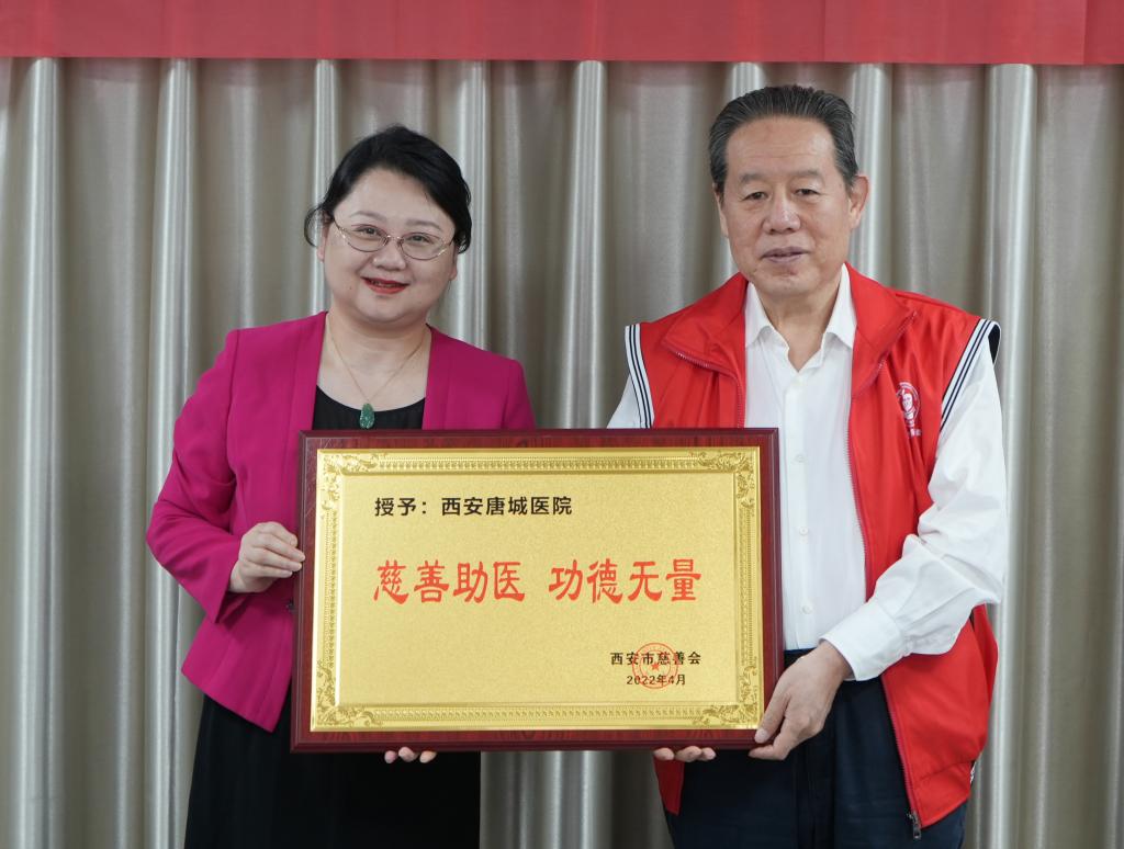 4月22日,西安市慈善會聯(lián)合西安唐城醫(yī)院在市慈善會隆重舉行“疫情無情人有情·慈善助醫(yī)贈英雄”捐贈活動。