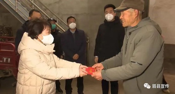 1月13日,眉縣縣委書(shū)記王繼萍開(kāi)展春節(jié)前走訪慰問(wèn)活動(dòng)。縣委常委、組織部部長(zhǎng)任博,縣委常委、政法委書(shū)記張曉斌,太白山旅游區(qū)管委會(huì)副主任張新林,縣總工會(huì)主席李西強(qiáng)一同參加慰問(wèn)。