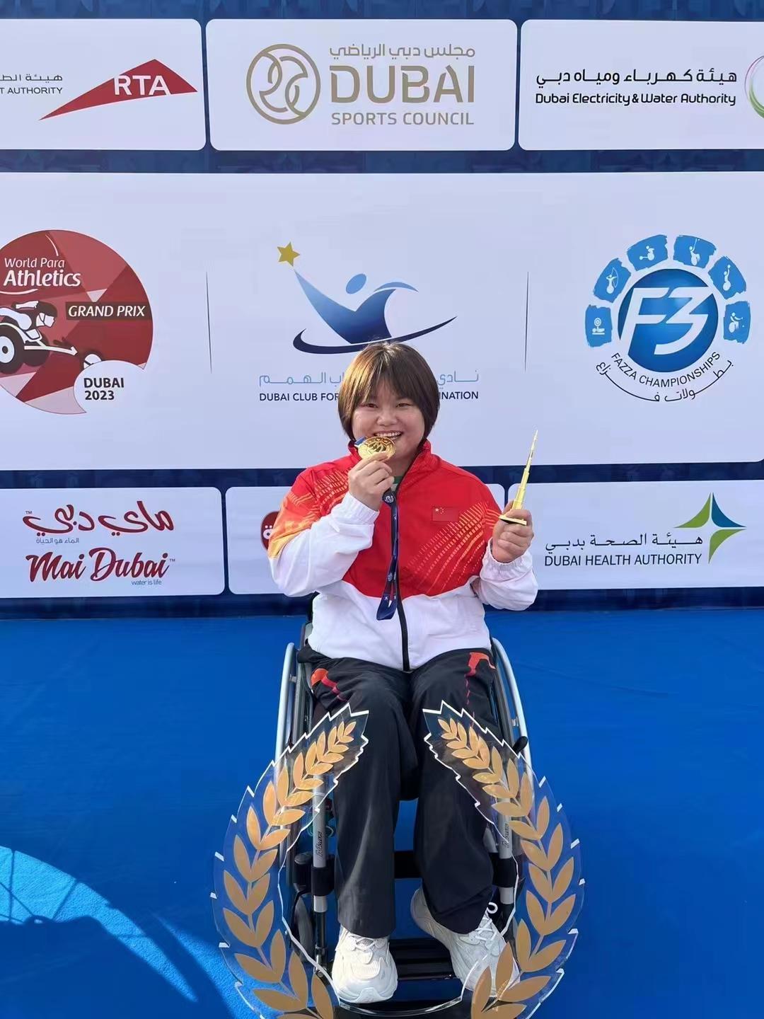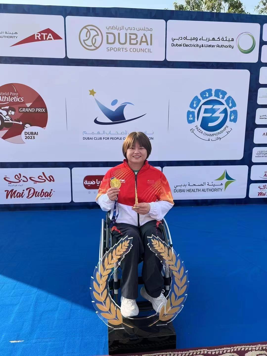 記者從省殘疾人體管中心獲悉,迪拜時間2月27日,在阿聯酋迪拜舉行的2023年世界殘奧田徑大獎賽上,我省殘奧會鐵餅冠軍董飛霞代表國家參賽,以23.30米的成績榮獲女子F55級鐵餅金牌,為祖國爭得了榮譽。