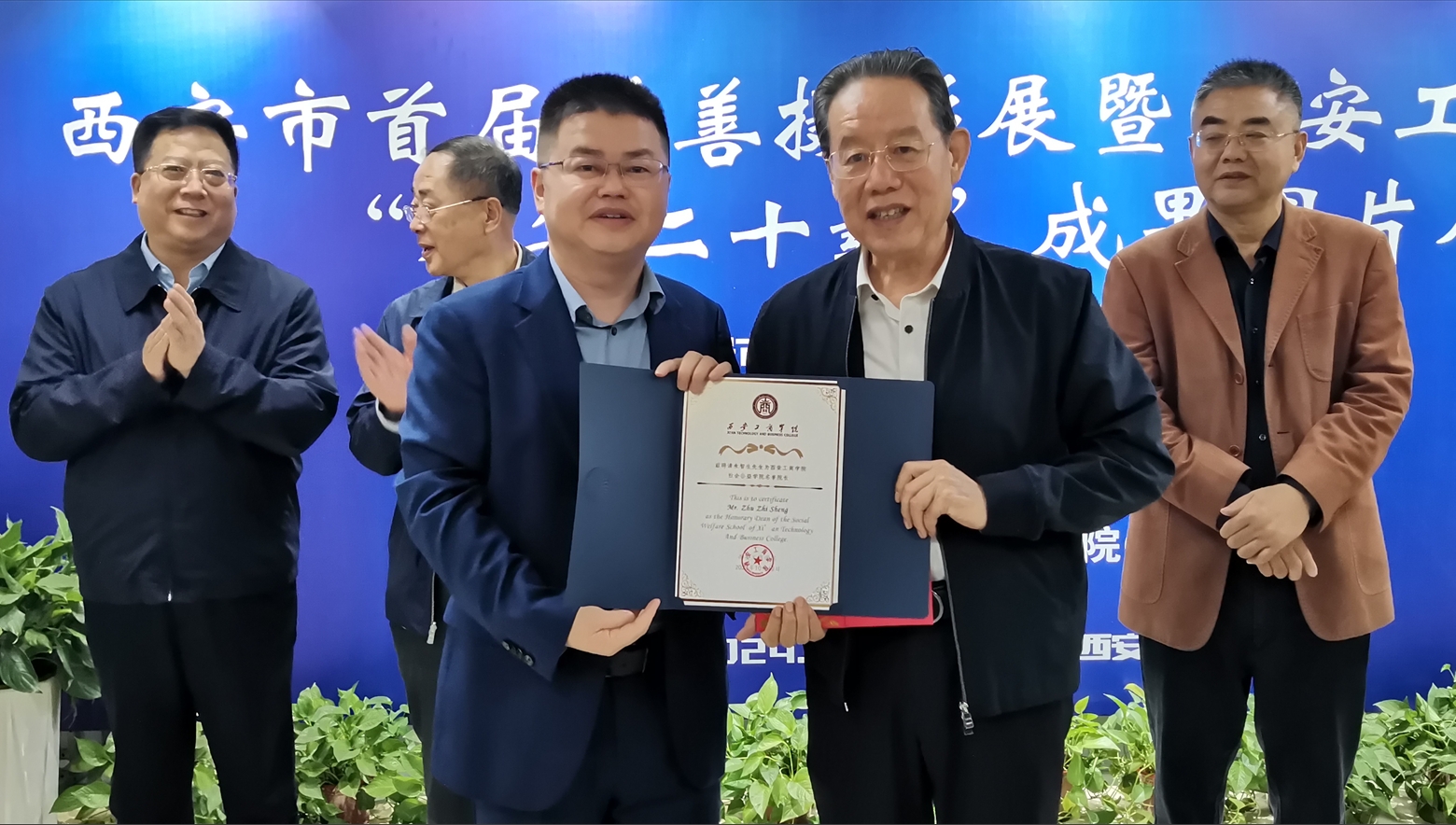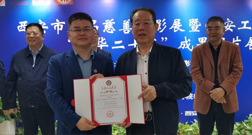 開(kāi)幕式進(jìn)行完畢后,西安工商學(xué)院副校長(zhǎng)、社會(huì)公益學(xué)院院長(zhǎng)程波宣讀了學(xué)校聘任決定,西安工商學(xué)院副董事長(zhǎng)、常務(wù)副校長(zhǎng)龍和平為西安市慈善會(huì)會(huì)長(zhǎng)朱智生頒發(fā)西安工商學(xué)院客座教授、社會(huì)公益學(xué)院名譽(yù)院長(zhǎng)聘書(shū)。