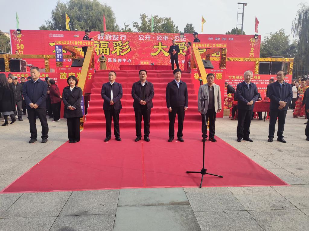 10月25日,“公益福彩大愛眉縣”刮刮樂戶外集中銷售活動暨2024年福利彩票公益金資助困難大學新生發(fā)放儀式在縣城張載廣場舉行,寶雞市民政局局長劉天宏宣布“公益福彩大愛眉縣”刮刮樂戶外集中銷售活動啟動??h領導麻承志、康振峰、馬貝貝、朱文杰參加活動。