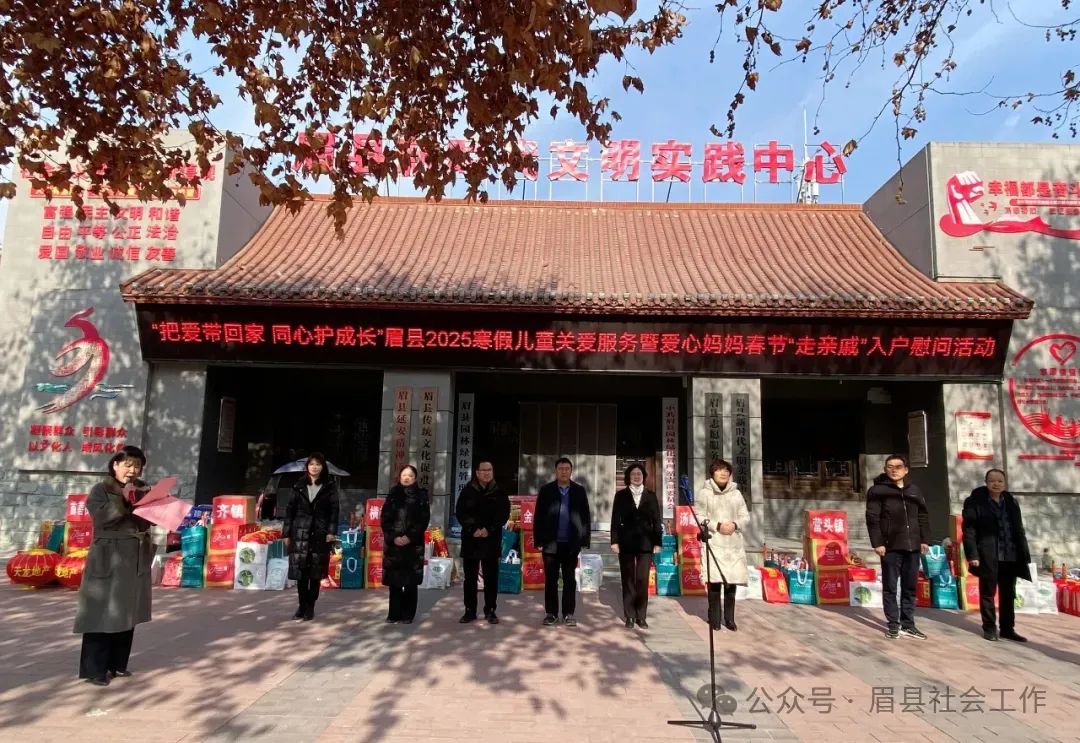 情暖寒冬,愛潤童心。1月17日,眉縣“愛心媽媽”志愿服務(wù)團(tuán)隊(duì)開展“把愛帶回家同心護(hù)成長”2025寒假兒童關(guān)愛服務(wù)暨愛心媽媽春節(jié)“走親戚”入戶慰問活動(dòng)??h人大常委會(huì)副主任郭杜鵑、縣人民政府副縣長、縣婦兒工委主任李倩、縣政協(xié)副主席朱文杰參加活動(dòng),活動(dòng)由縣婦聯(lián)主席翟薈芳主持。