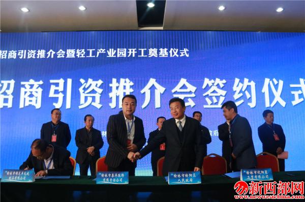 最后,區(qū)長賀利貴代表榆陽區(qū)人民政府與廣州猛獅新能源投資有限公司、河北科澳塑膠有限公司、北京國發(fā)星空投資管理有限公司、榆林遠(yuǎn)景測控技術(shù)有限公司等19家企業(yè)簽約,共簽約項目19個,總投資126.5億元,這些項目涵蓋輕紡工業(yè)、現(xiàn)代服務(wù)、新能源、化工等各個領(lǐng)域。