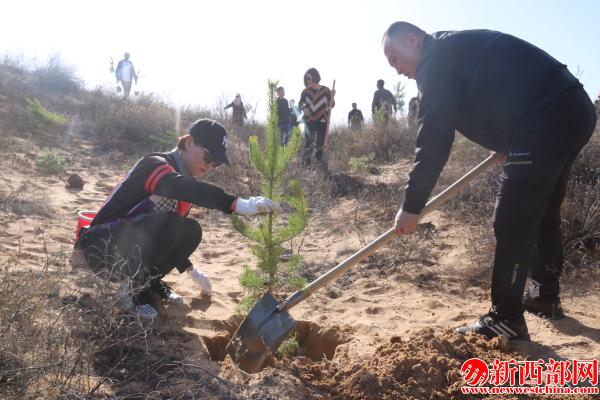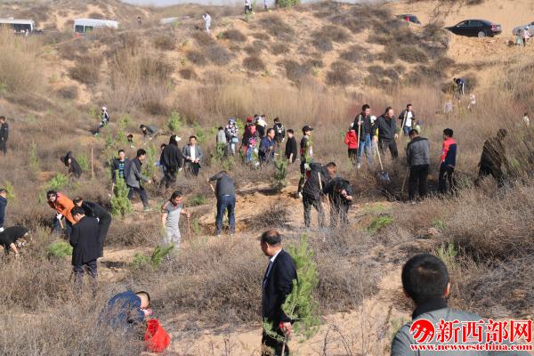 新西部網(wǎng)榆林訊(王丹丹 謝安發(fā)攝影/謝安發(fā))春回大地,萬物復(fù)蘇,正是植樹造林、播種綠色的大好時(shí)節(jié)。4月1日,榆陽區(qū)1400余名干部職工來到小紀(jì)汗林場昌汗界北沙——榆陽區(qū)義務(wù)植樹基地參加義務(wù)植樹。