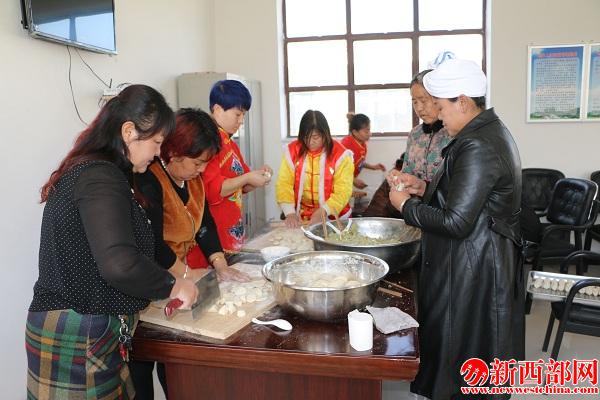 精彩的節(jié)目表演后,店塔鎮(zhèn)婦女代表們開始熬臘八粥、包餃子,為老人剪頭發(fā),發(fā)放慰問品,陪他們共進(jìn)晚餐,度過一個(gè)難忘的臘八節(jié)。