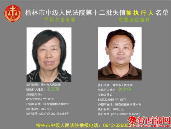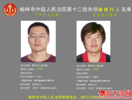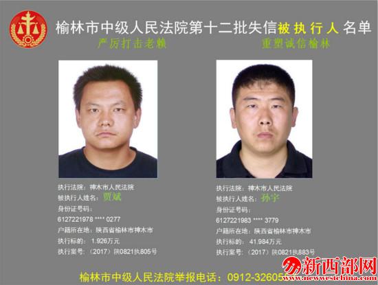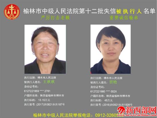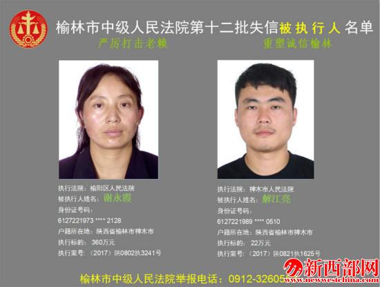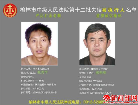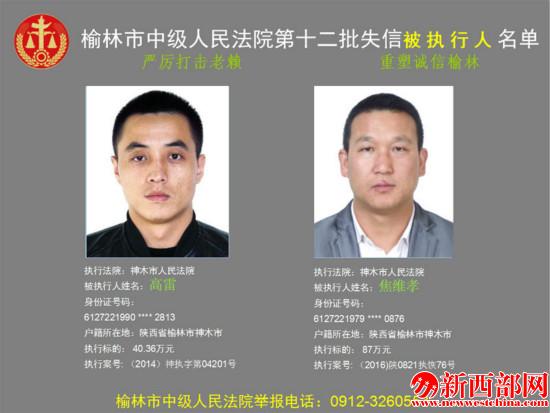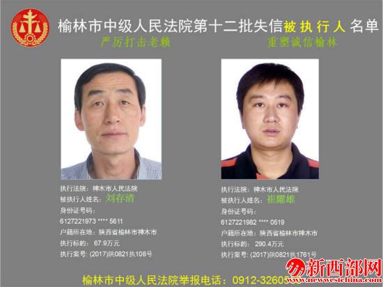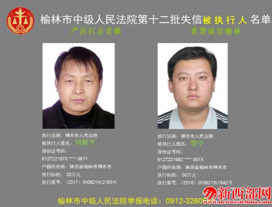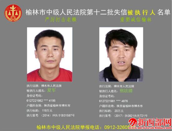發(fā)布:榆林第十二批失信被執(zhí)行人“黑名單”